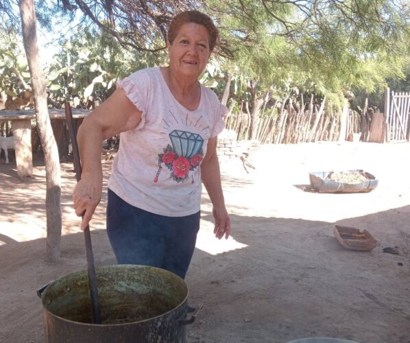 Detrás de cada paila hay una planta clave del monte chaqueño semiárido: la tuna, conocida localmente como Opuntia. Se trata de una cactácea de extraordinaria adaptación, capaz de prosperar en suelos pobres, con escasas precipitaciones y altas temperaturas. Estas cualidades la convierten en un recurso estratégico frente al cambio climático. Además de su fruto, la planta aporta forraje, protege el suelo de la erosión y contribuye a la captura de carbono, cumpliendo un rol ambiental relevante en el paisaje rural de Choya.