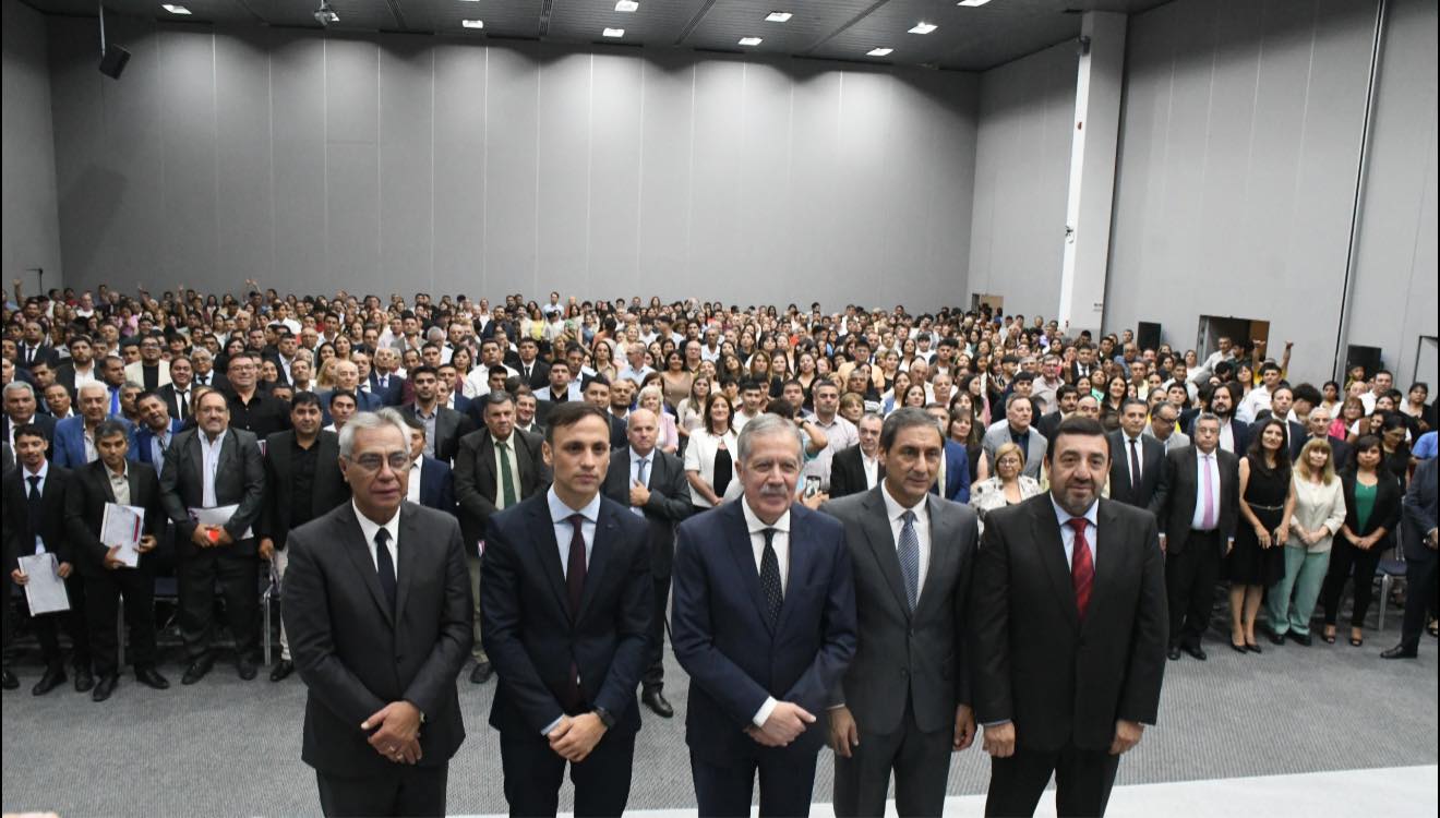 Acompañaron al mandatario provincial en el vicegobernador Carlos Silva Neder; el jefe de Gabinete, Víctor Araujo; los ministros de Gobierno, Bernardo Herrera; de Justicia, Matilde O’Mill; de Desarrollo Social, Ángel Niccolai, y de Producción, Néstor Machado. Además de la secretaria de Trabajo, Julia Comán y el subsecretario de Gobierno, Luis Villavicencio, legisladores e invitados especiales.